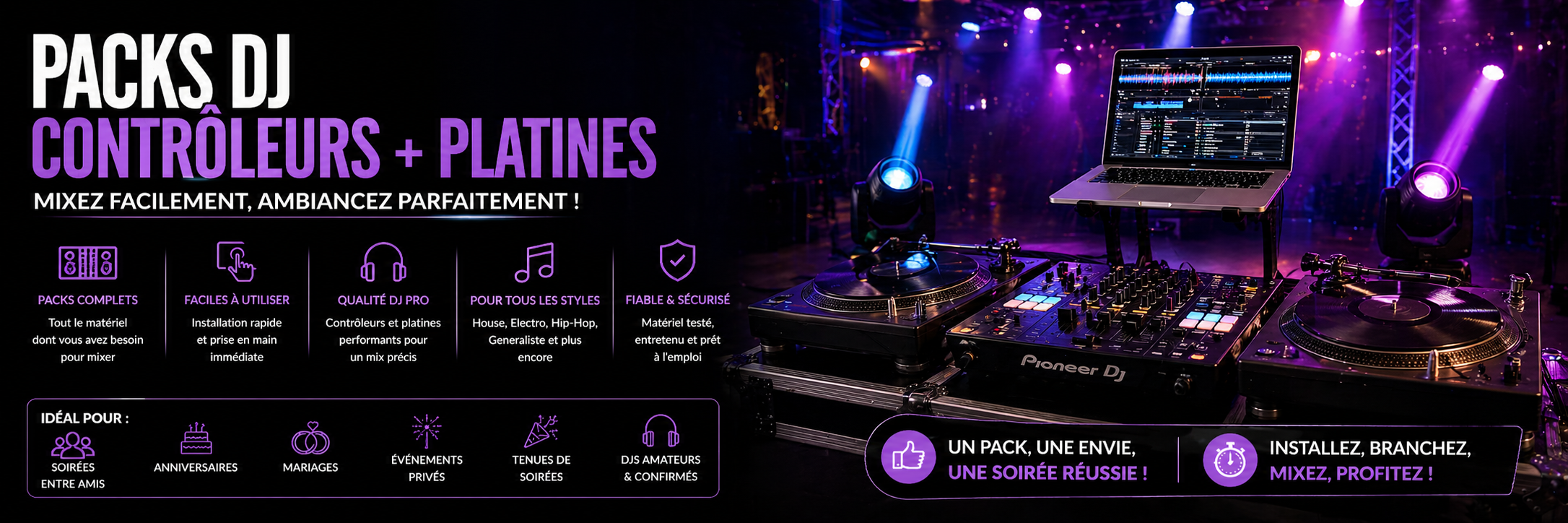 Packs DJ complets avec contrôleur et platines pour mixer facilement lors de vos soirées et événements.